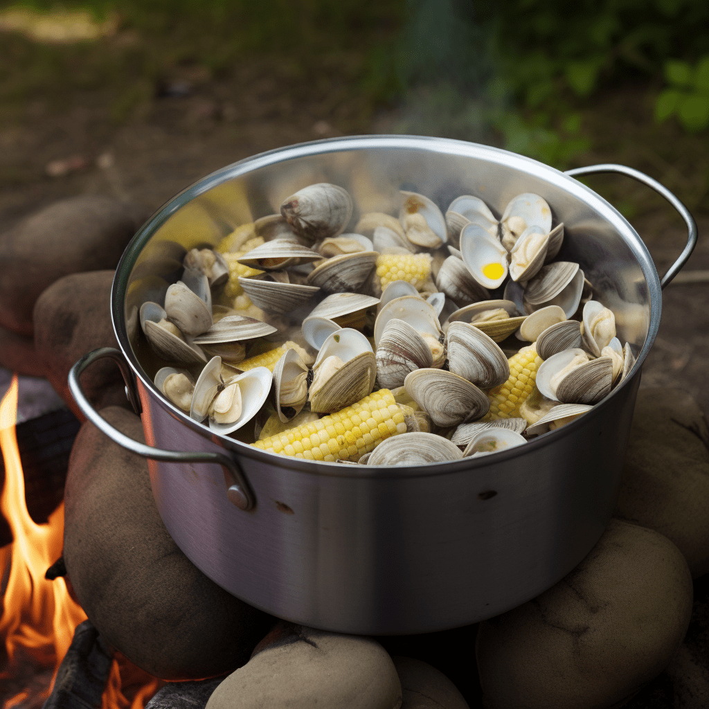 This clam bake brings together a medley of fresh seafood—lobster tails, clams, shrimp, and scallops—alongside sweet corn, potatoes, and sausages. Each layer is meticulously timed to ensure everything cooks to perfection. If you have access to fresh seaweed, it makes an ideal base and imparts a hint of the ocean; otherwise, corn husks work as an aromatic layer, though they can be a bit tricky to remove.